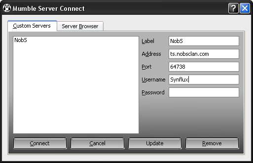 I tray to connect to your teamspeaker server at this adress:78.129.202.11:8767 dont know if I must have permition from admin or other thing like this but it isn't in your guide! so I need help because I hope to be a NobS clan member ;)