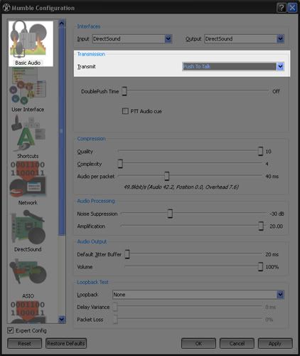 OK WTF??? been in mumble few times now, i hear you guys talkin but its like my mic dont work. Mic works fine in teamspeak so i know it aint broke. Is there something else i have to do here? I have the newest version of mumble and windows XP.
